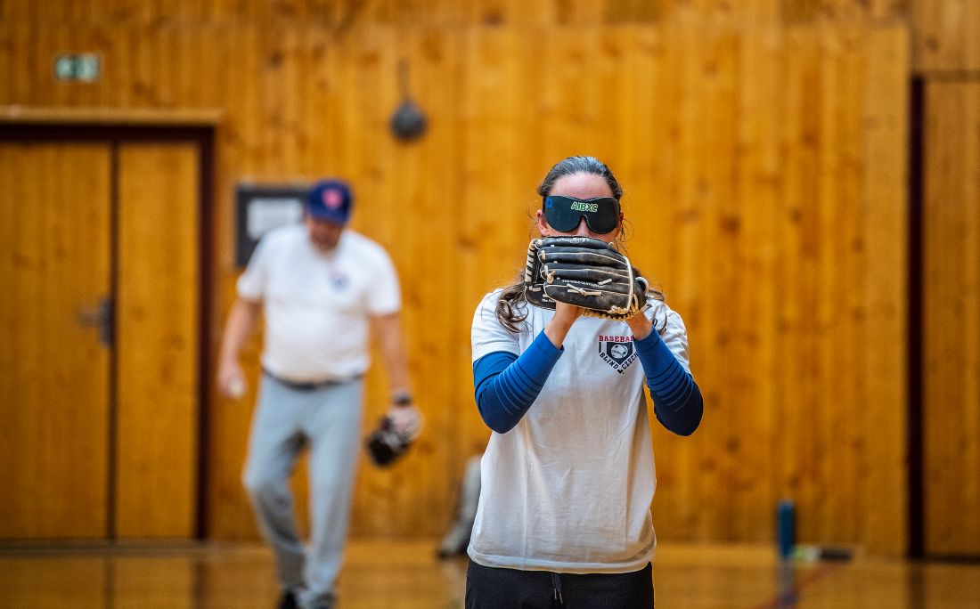 Tohle není příprava běžného sportovního oddílu. Běhání doprovází postupně zesilující klapot destiček, hází se míčky s rolničkami, a je třeba být neustále ve střehu, aby nikdo nepřišel k úrazu. Většina přítomných totiž nevidí - jsme na tréninku reprezentace v blind baseballu. V tělocvičně ZŠ Donovalská na pražském Chodově se každý týden setkává několik mladých lidí s očním hendikepem, aby si osvojili baseballové návyky. Dohlíží na ně ostřílený baseballový trenér Richard Kania a dvě studentky z Fakulty tělesné výchovy a sportu UK Tereza StejspalováEliška Thompson, které blind baseball rozvíjí v České republice.