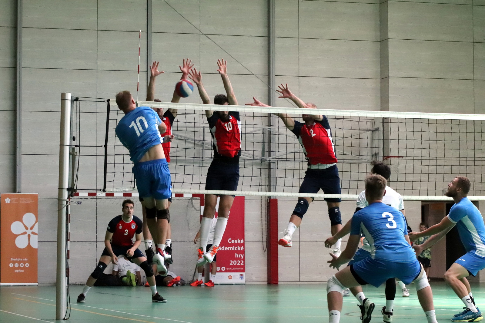 O zlatý úspěch v kolektivních sportech se postaral volejbalový tým mužů, který prošel turnajem bez ztráty jediného setu. Finále proti Vysokému učení technickému Brno (VUT) vyhráli jednoznačně 3:0. Tým nastoupil v tomto složení: Viktor Bergmann, Martin Fikar, Jan Svoboda, Matěj Šupka, Tomáš Dlouhý, Pavel Horák, Jiří Toman (všichni FTVS UK), Michal Nekvinda (2. LF UK), Jiří Kotal (MFF UK) a Jakub Heřman (3. LF UK).