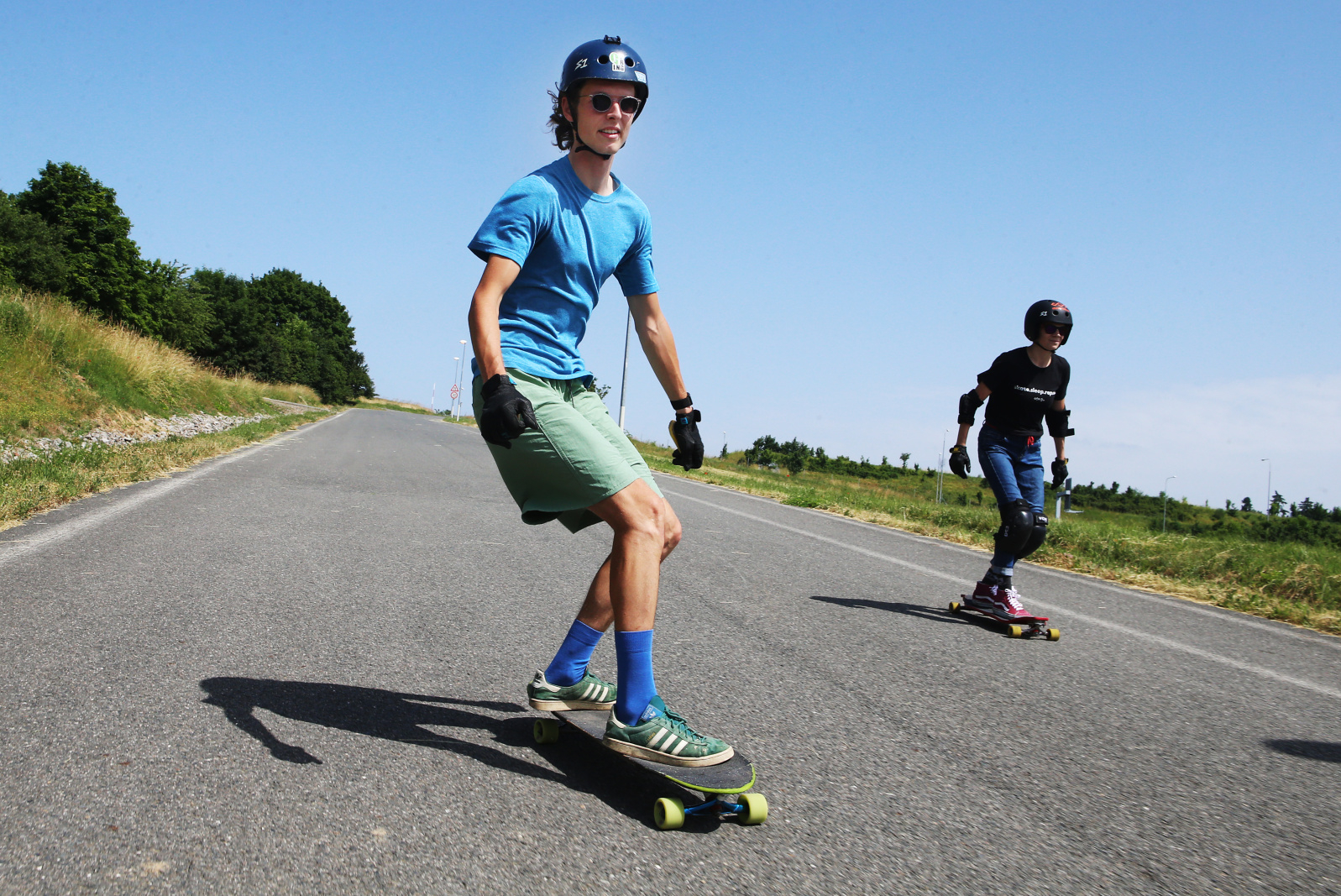 Když prvně spatříte někoho, jak „letí“ na prkně z prudkého svahu v celoobličejové helmě i tělových ochranných pomůckách a bojuje o pozici, asi si pomyslíte, že to jsou bytosti z cizí planety... Ale ne: sportovní longboarding nabírá na popularitě, k jeho výrazným tvářím patří i „crew“ z Univerzity Karlovy.