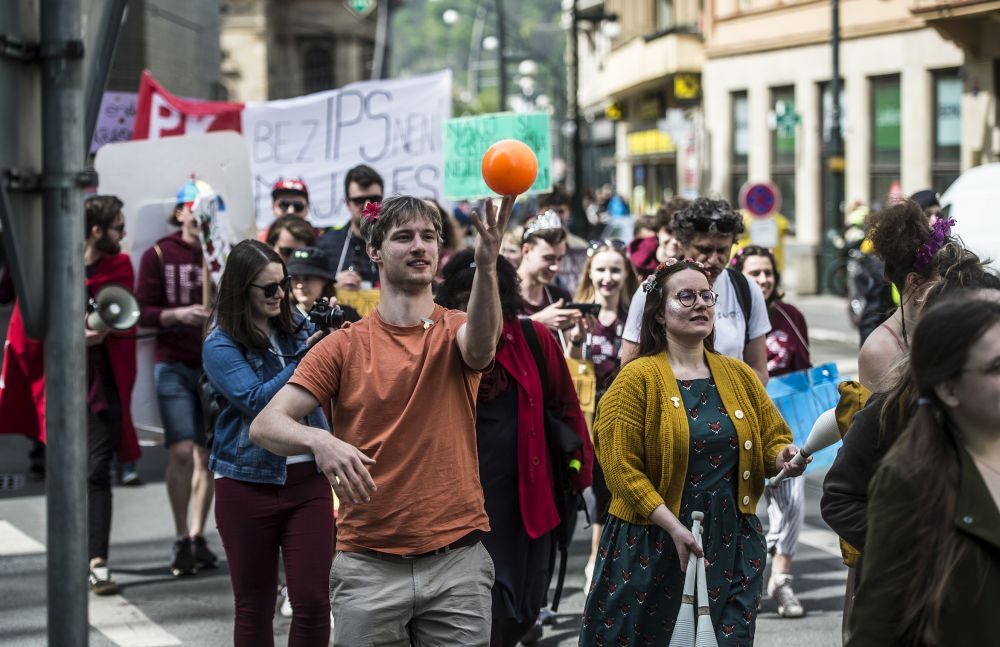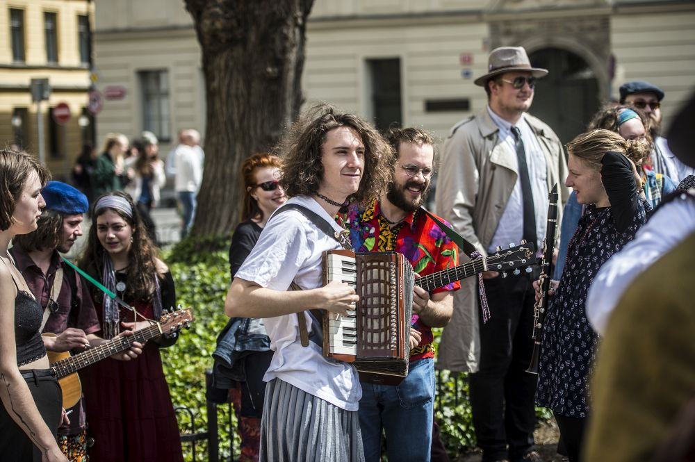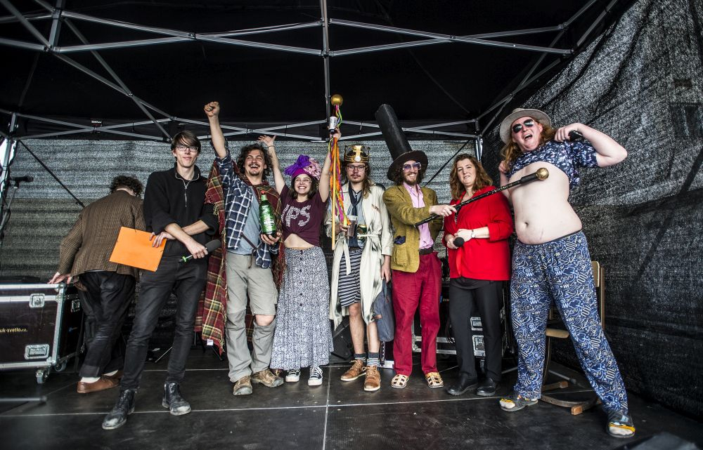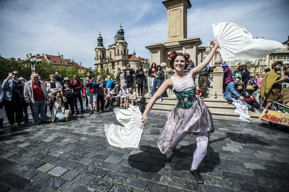 Rozruch v centru Prahy a pozornost kolemjdoucích turistů vyvolaly desítky studentů, kteří se vybavení transparenty, hudebními nástroji a pestrobarevnými kostýmy vydali z ostrovu Kampa na prvomájový průvod městem. Vedla je čtveřice kandidátů na nového krále či královnu studentů: Hexagon Trojský (student Matematicko-fyzikální fakulty UK), Doktor And a Velký otec (oba studenti Filozofické fakulty UK) a Františka Josefína I. (studentka Fakulty sociálních věd UK).