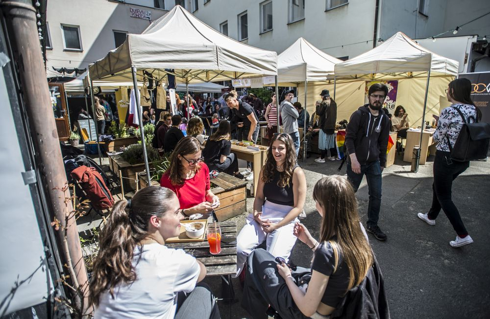 Během svátečního odpoledne a večera se pak v Kampusu Hybernská konaly koncerty studentských kapel, divadelní představení, workshopy, diskuze a autorská čtení. Zájemci si mohli také opravit počítač v rámci dílny Potřebnej počítač, vnitřní nastavení si pak mohli zlepšit díky studentům kurzu Živá laboratoř spolupráce organizovaného Centrem pro přenos poznatků a technologií UK. V několika blocích si účastníci jejich programu mohli vyzkoušet arteterapii, muzikoterapii, jógu nidra a aplikovanou improvizaci. V areálu kampusu se prezentovaly také různé studentské spolky spojené s UK.