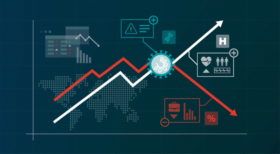 Ve zkratce: pro epidemiologické šíření nemocí jsou klíčové dva parametry – reprodukční číslo, které udává kolik dalších lidí nakazí jeden nemocný. Tento parametr je dán podstatou nemoci a bez možnosti opatření jako očkování ho neumíme přímo ovlivnit. Druhý parametr je intenzita společenských kontaktů, který můžeme velmi dobře regulovat na osobní i vládní úrovni. Ekonomie srovnává náklady a výnosy tzv. spontánního průběhu šíření nemoci a jednotlivých vládních omezení. Aktuálně probíhající omezení společenských kontaktů s sebou přináší nepohodlí a řadu finančních nákladů i ztrát. I přesto by ale podle odborníků spontánní scénář (bez vládních omezení) způsobil mnohem větší ekonomické škody, a především veliké ztráty na zdraví a životech.