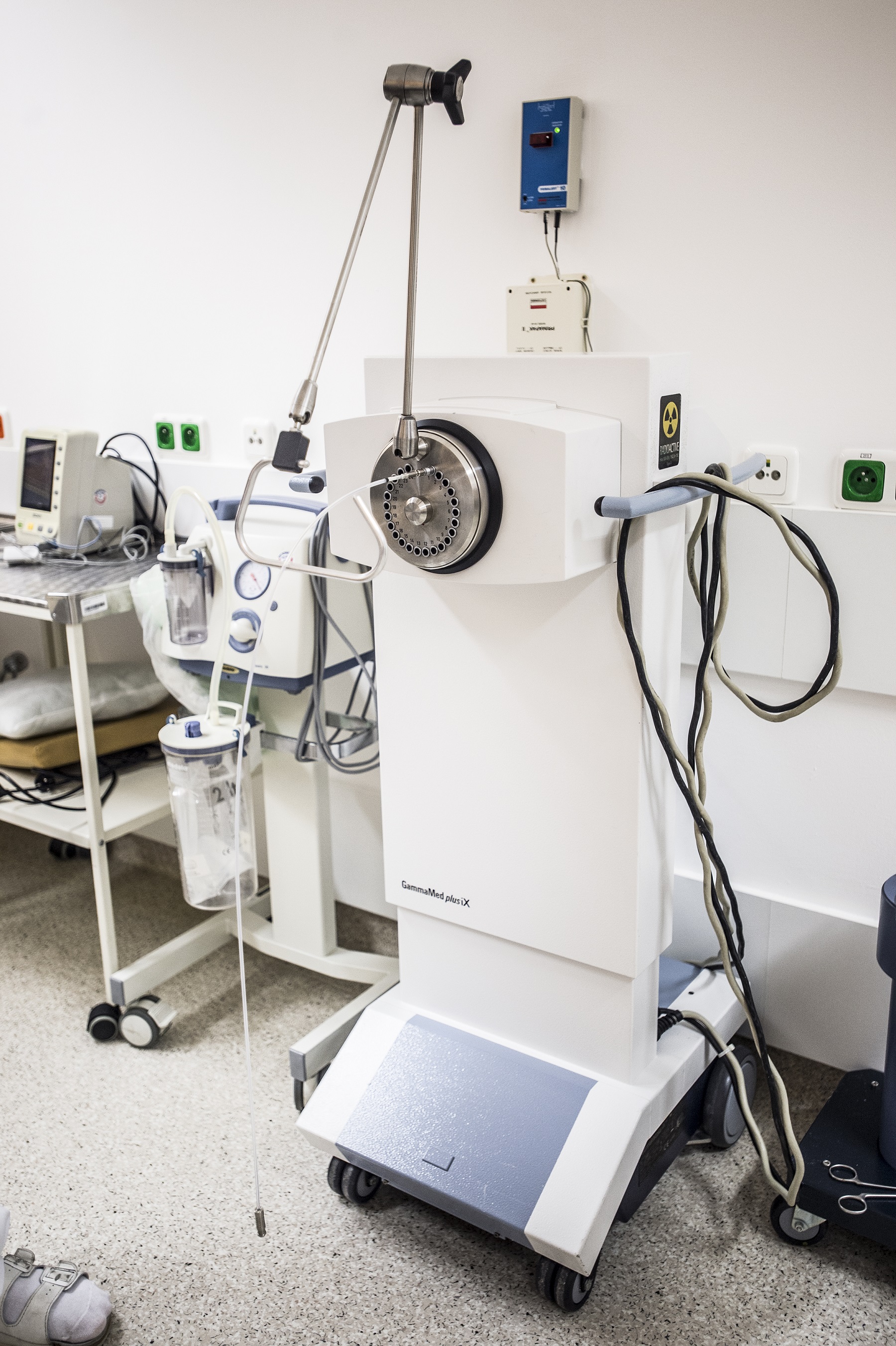 „Pacientka s indikovanou radioterapií pro nádor děložního čípku nejprve podstoupí externí radioterapii na lineárním urychlovači, kde se ozáří jednak samotný nádor, ale také příslušné lymfatické uzliny, jež mohou být rovněž zasažené. Poté následuje brachyterapie,“ popisuje Grepl uprostřed sálku odděleného od sousedních místností silnými betonovými zdmi, aby byl zdroj záření, radionuklid iridia 192, co nejvíce odstíněn. Nedá se totiž vypnout, přírodní látka „září“ neustále. Díky stínícímu kovovému kontejneru, který „zrnko“ o rozměrech třikrát jeden milimetr „chrání“, je ovšem pobyt v místnosti bezpečný. „Každý z personálu, kdo se zde denně pohybuje, má na oděvu neustále připevněný dozimetr, který zaznamenává dávku ozáření – nedostáváme se ale ani k procentu ročních zákonných limitů,“ upozorňuje fyzik.