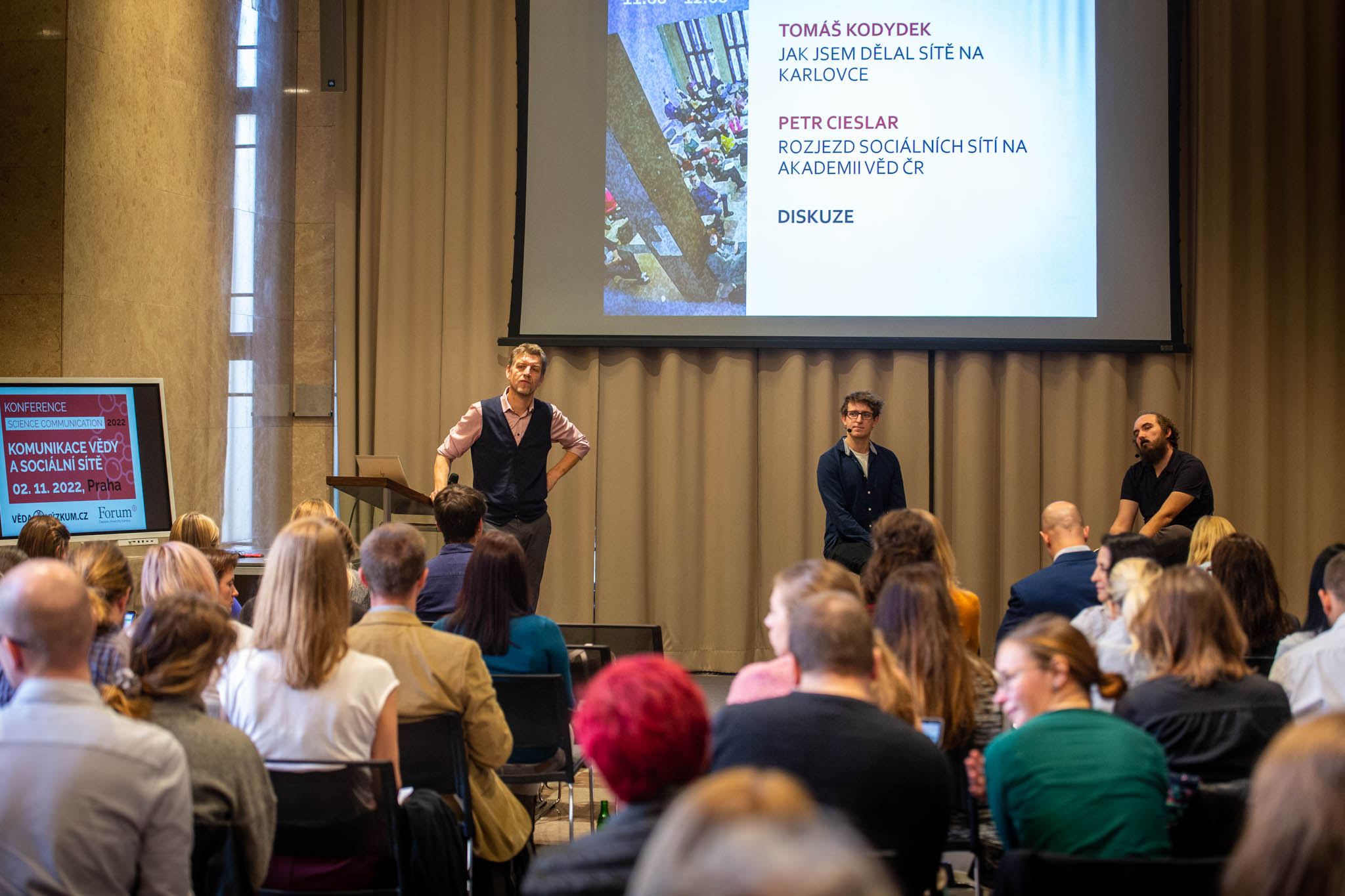 „Necelých devadesát procent uživatelů používá sociální sítě pro komunikaci s přáteli, osmdesát procent lidí se chce bavit a pro 77 procent uživatelů jsou sociální sítě i zdrojem informací,“ zahájil svoji přednášku Tomáš Kodydek, bývalý správce sociální sítích na Univerzitě Karlově a člen redakce Forum. A rovnou jako zdroj dalších informací o českých a slovenských uživatelích doporučil průzkum AMI Digital Index 2021. Druhým hlavním řečníkem byl Petr Cieslar, jenž stojí za rozjezdem a úspěchem sociálních sítích Akademie věd ČR a působil coby vedoucí Oddělení publicity vědy, výzkumu a inovací na Úřadu vlády ČR.