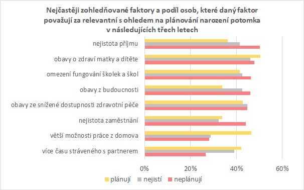 Nedávná zahraniční studie (Luppi et al. 2020. The impact of COVID-19 on fertility plans in Italy, Germany, France, Spain and UK. Demographic Research. 43) ukázala, že tyto reprodukční plány jsou ovlivněny nejen standardními charakteristikami jako jsou věk, vzdělání či ekonomická situace, ale může na ně mít vliv i horší pandemická situace v regionu, což se potvrdilo například v Německu. Zde jedinci žijící v regionech, které byly více zasaženy pandemií, od svých reprodukčních plánů častěji zcela upustili oproti těm jedincům z regionů, kde pandemie měla mírnější průběh. Na druhou stranu se ale také ukázalo, že jiní lidé mohli pandemii naopak vnímat jako vhodný čas pro početí dítěte s ohledem na skutečnost, že možnosti trávení času se omezily a výhled do budoucnosti je stále do značné míry nejistý.