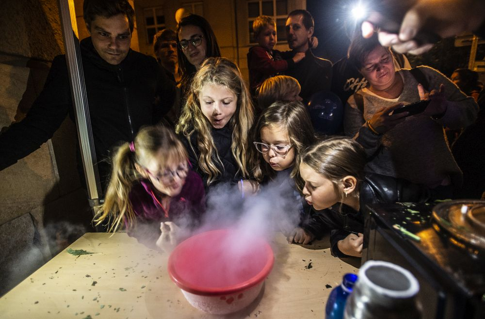 „My tady zapalujeme děti! A děti nekřičí, děti nebrečí! Čím to je?“ vyvolával jeden ze studentů Matematicko-fyzikální fakulty UK a člen fakultního Optického spolku na pražském Albertově. V příšeří přicházejícího pátečního večera na jednoduchých pokusech, které trochu bublaly i trochu hořely, členové jeho spolku demonstrovali návštěvníkům základní fyzikální zákony a podobně jako kouzelníci si přitom brali na pomoc děti z publika. A stejně jako bývá ve filmech na závěr poznámka, že při natáčení nebylo zraněno žádné zvíře, ani při pokusech, které měli pevně pod kontrolou studující z MFF UK, nedošlo ke zranění žádného dítěte. Naopak, děti během programu nadšeně výskaly a ochotně stály dlouhé fronty, aby se také mohly zkusit nechat zapálit.
