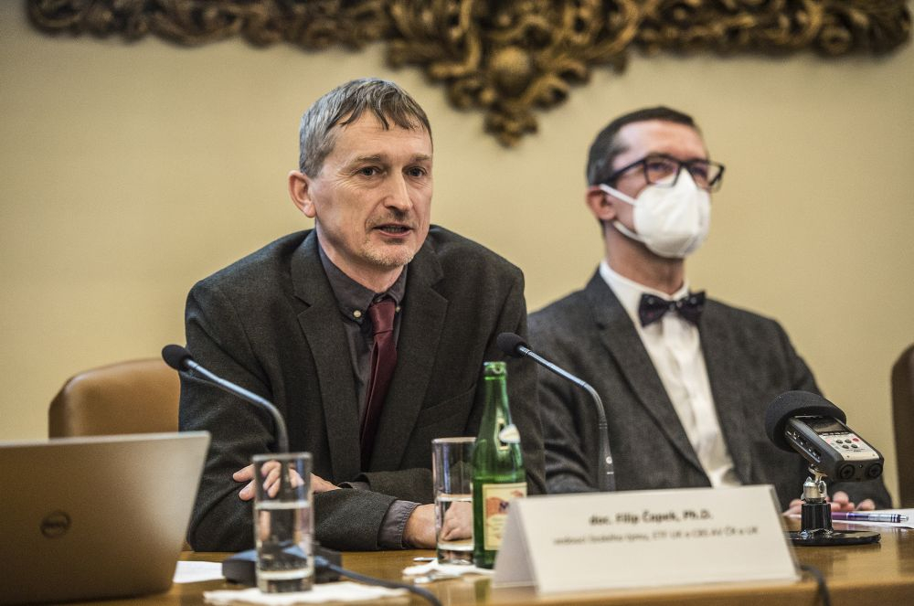 Profesor Martin Prudký z týmu ETF UK s nalezenou olejovou lampou.