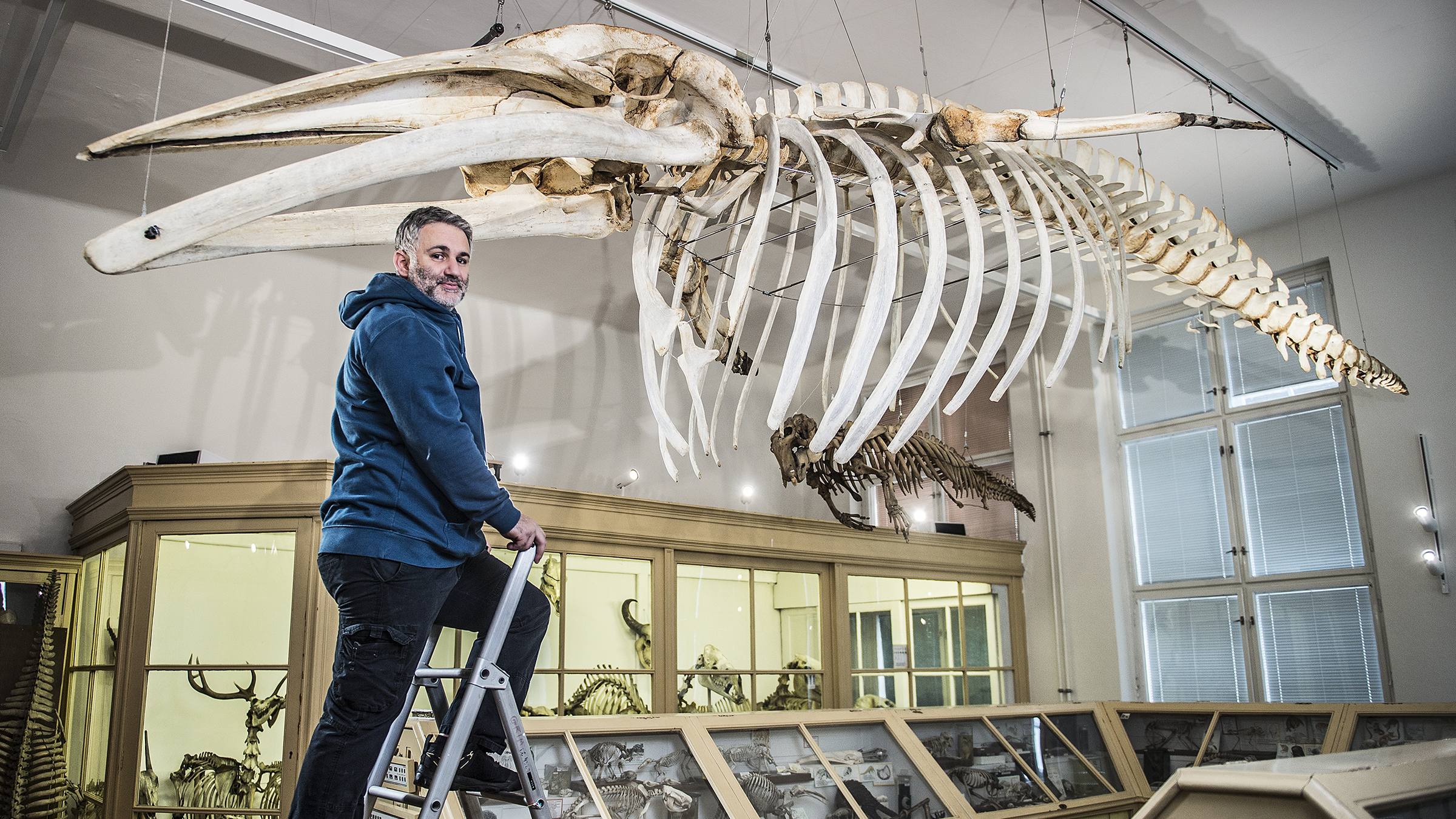 Původně nebyla kompletně vypreparovaná a její hlava se „dívala“ z okna. Dnes má lebku za dveřmi a u okna ocas. Navíc úplně celá nádherně voní! Kostra plejtváka v Anatomickém ústavu 1. lékařské fakulty UK ovšem zažila mnohem více změn.